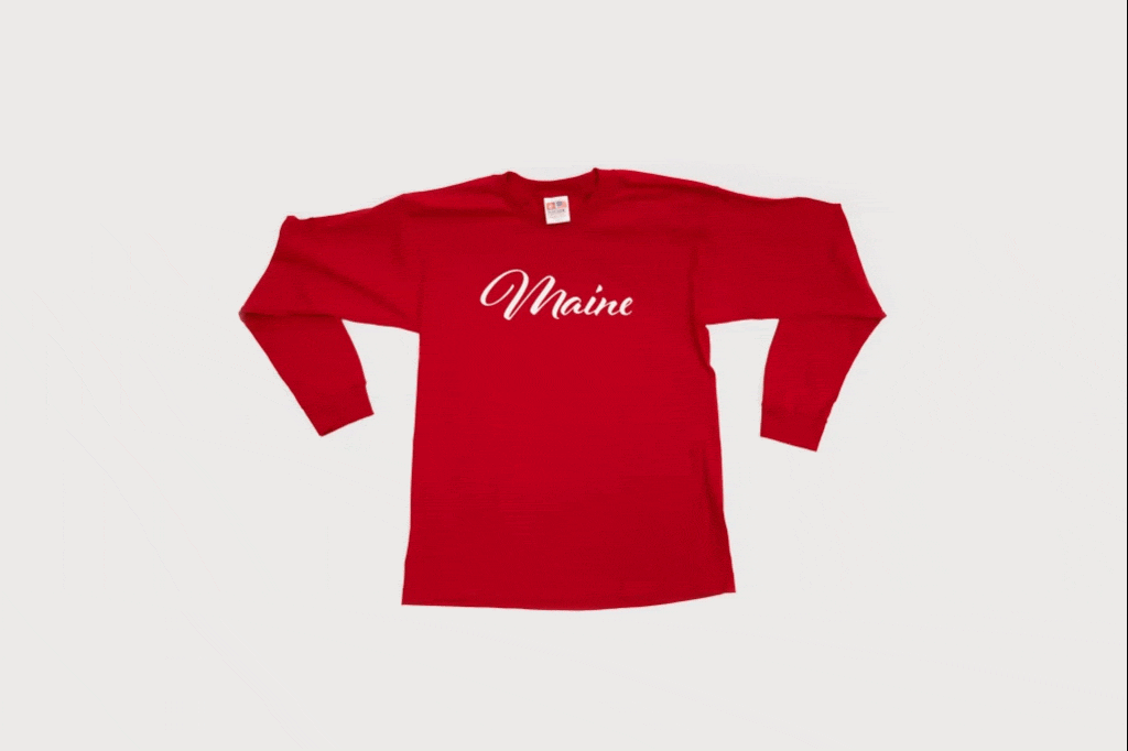 The Classic Maine Script Long-Sleeve Tee in Red